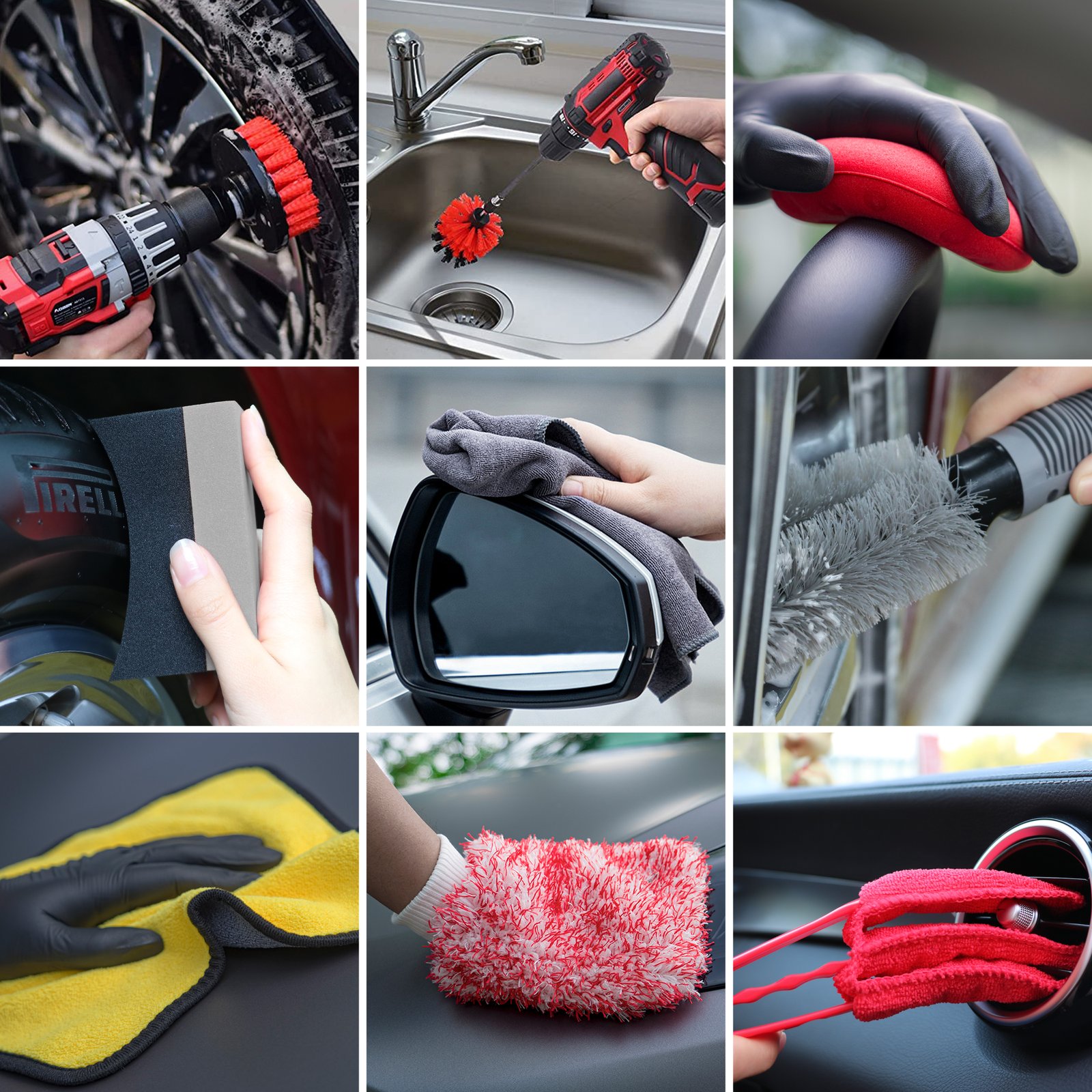 Ideal for Interior and Exterior Cleaning: Whether you’re cleaning the delicate interior surfaces of your car, such as leather seats and dashboards, or tough exterior parts like wheels, tires, and grills, this 21-piece set is designed to provide optimal tools for both tasks.
