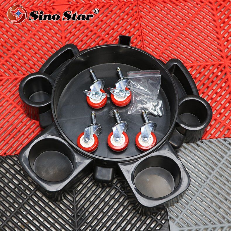 Heavy-Duty Construction: Made from durable materials, the rolling bucket dolly is built to withstand the weight of full buckets, providing long-lasting performance in demanding environments like garages, workshops, or car detailing areas.