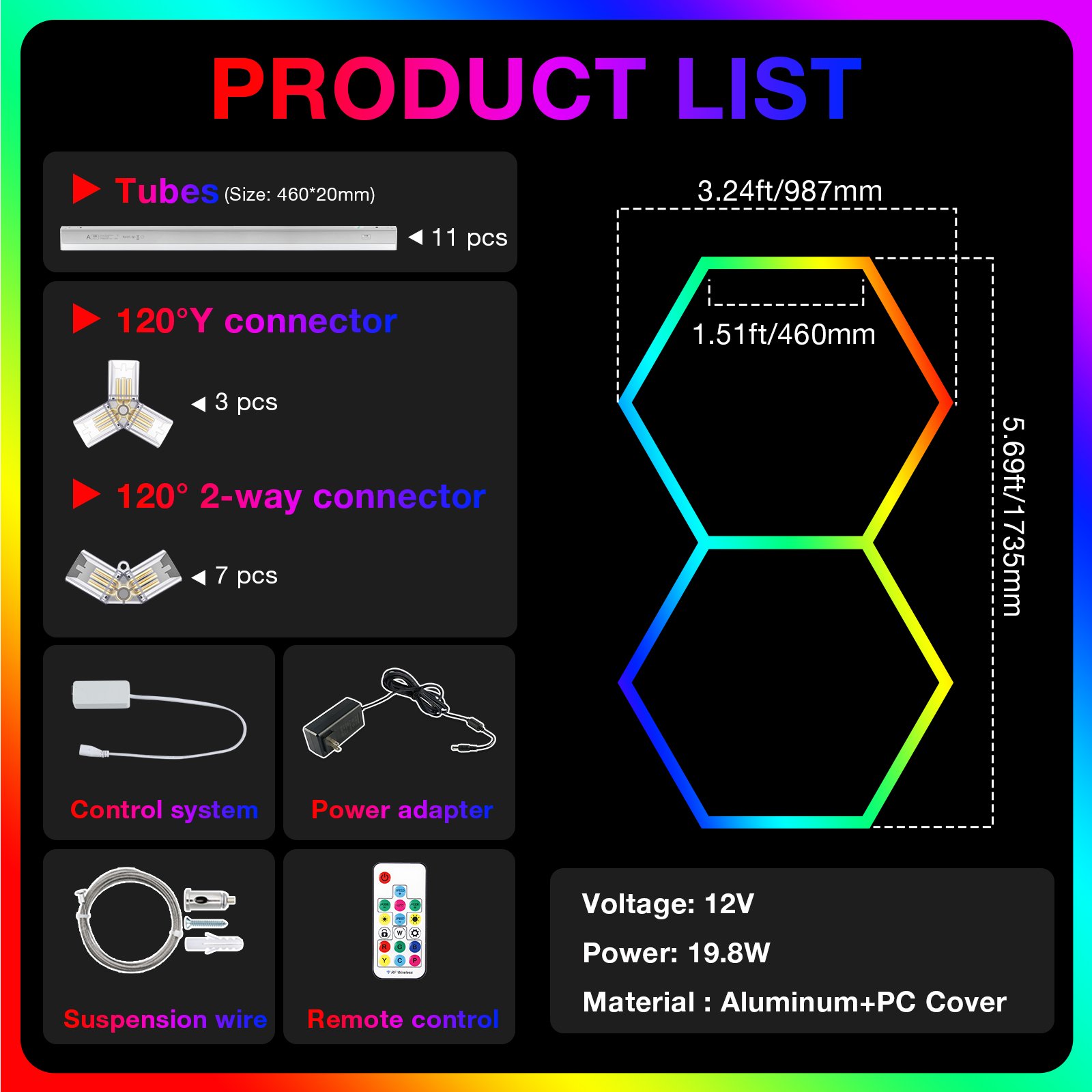 RGB honeycomb lights, RGB hex lights, RGB lights hexagon, hexagon light RGB