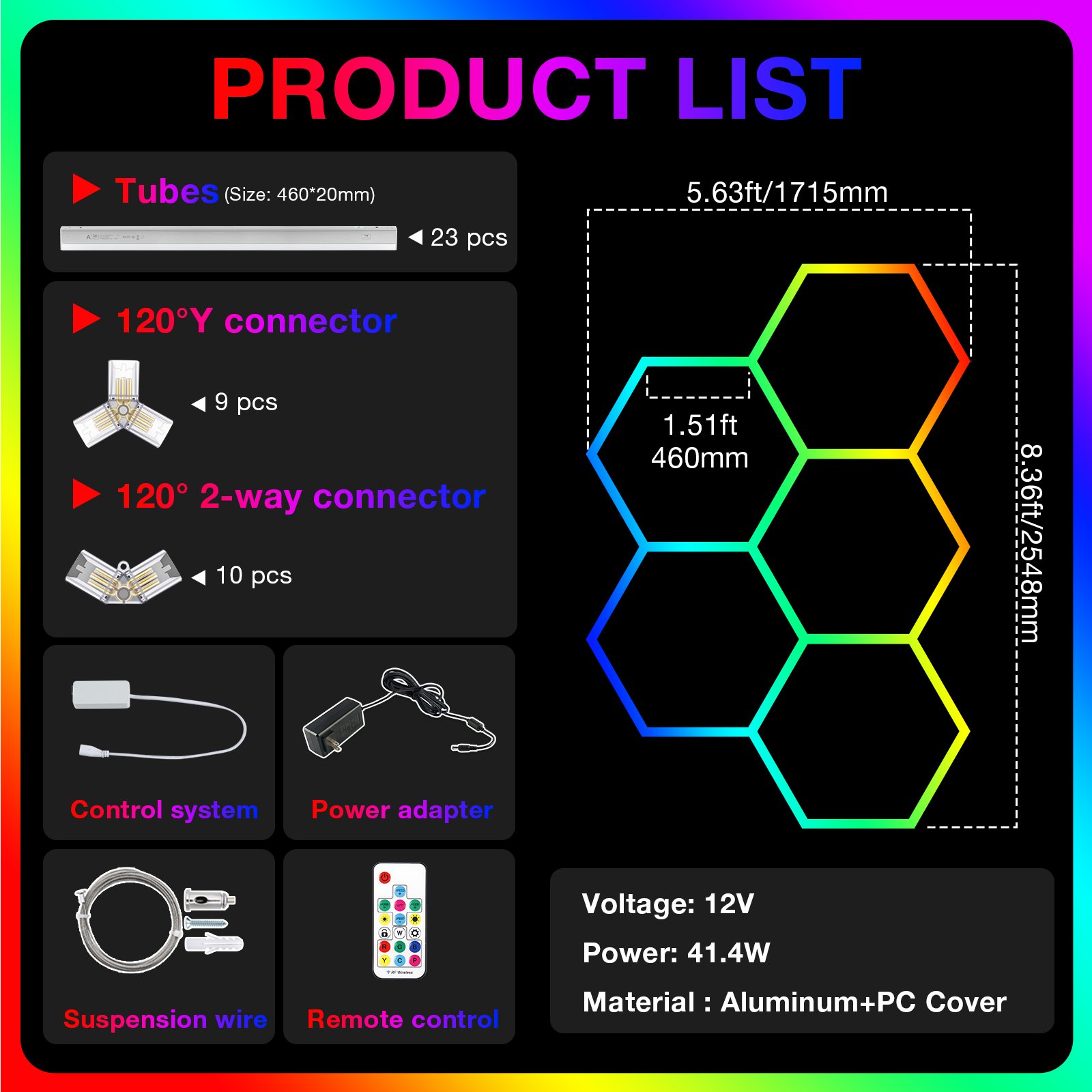 RGB honeycomb lights, RGB hex lights, RGB lights hexagon, hexagon light RGB