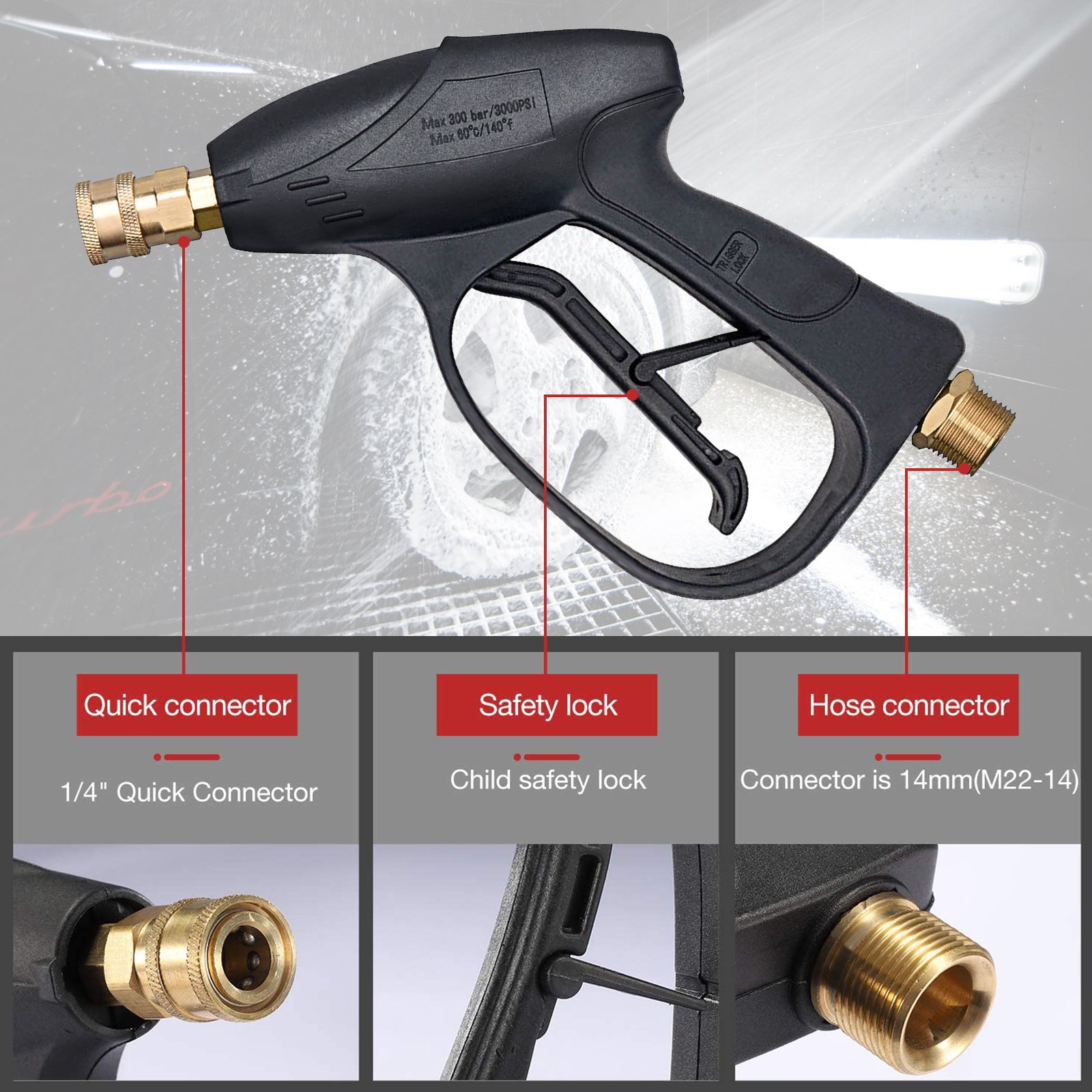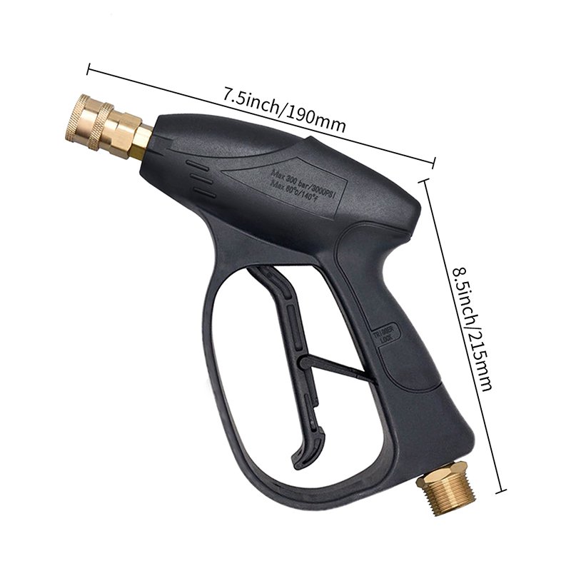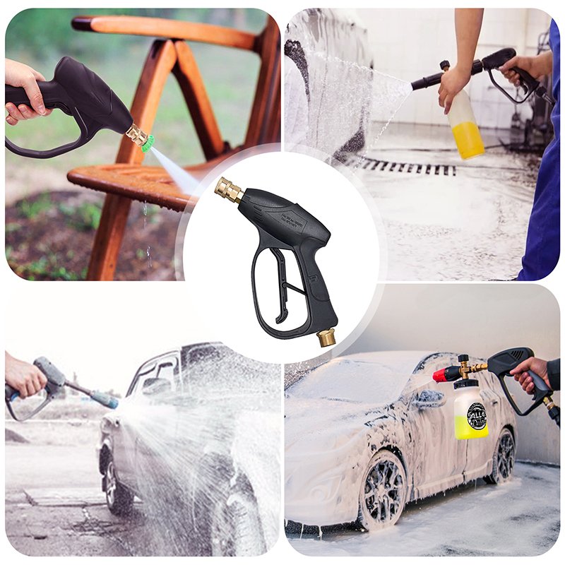 Versatile Use: Ideal for a variety of applications, the short spray gun can be used for car washing, detailing, garden watering, surface cleaning, or even as part of a pressure washing setup for smaller cleaning tasks. Its multi-purpose nature makes it an essential tool in both professional and personal settings.