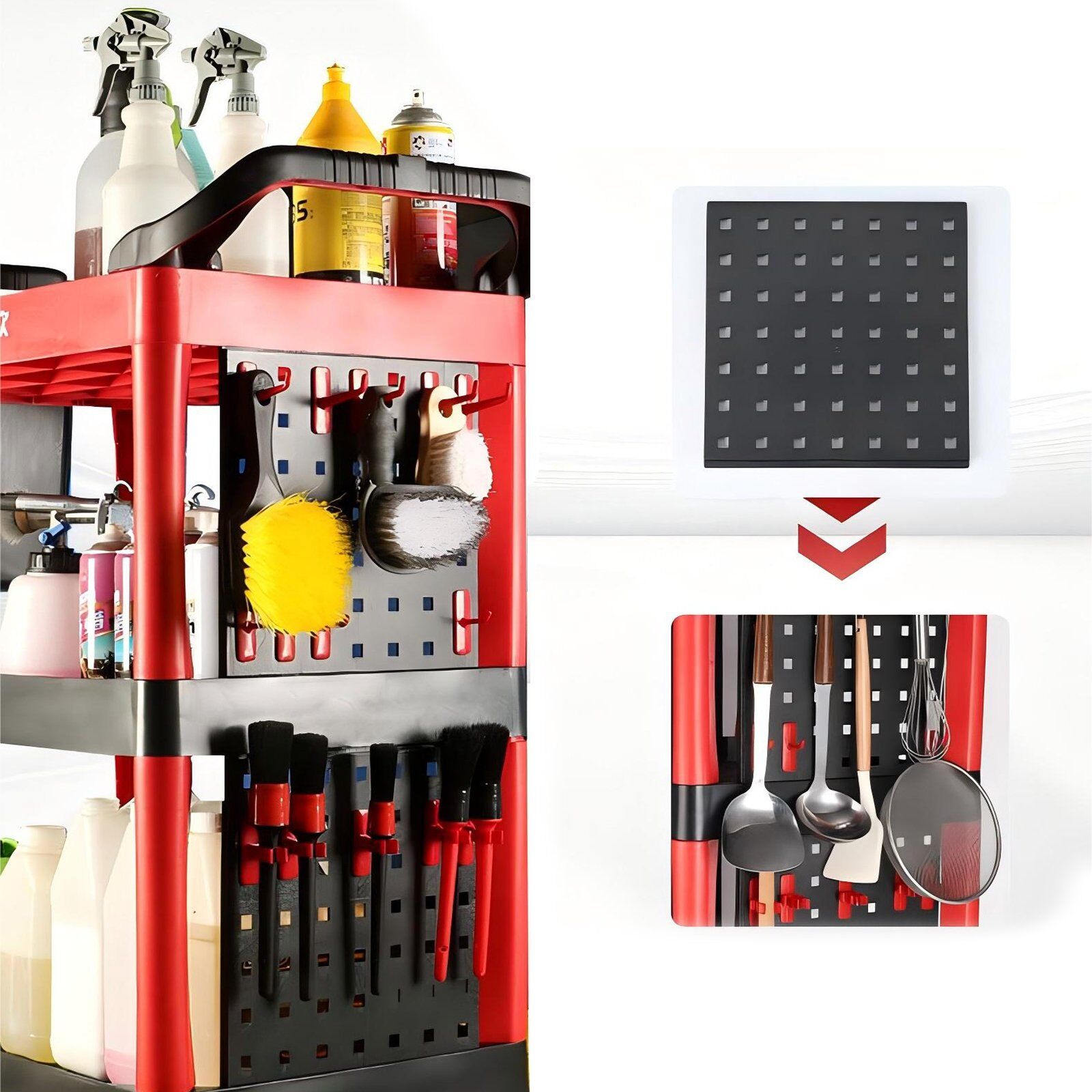 Ample Storage Capacity: Designed with multiple shelves, compartments, and hooks, providing plenty of space to organize and access detailing tools, chemicals, and accessories.